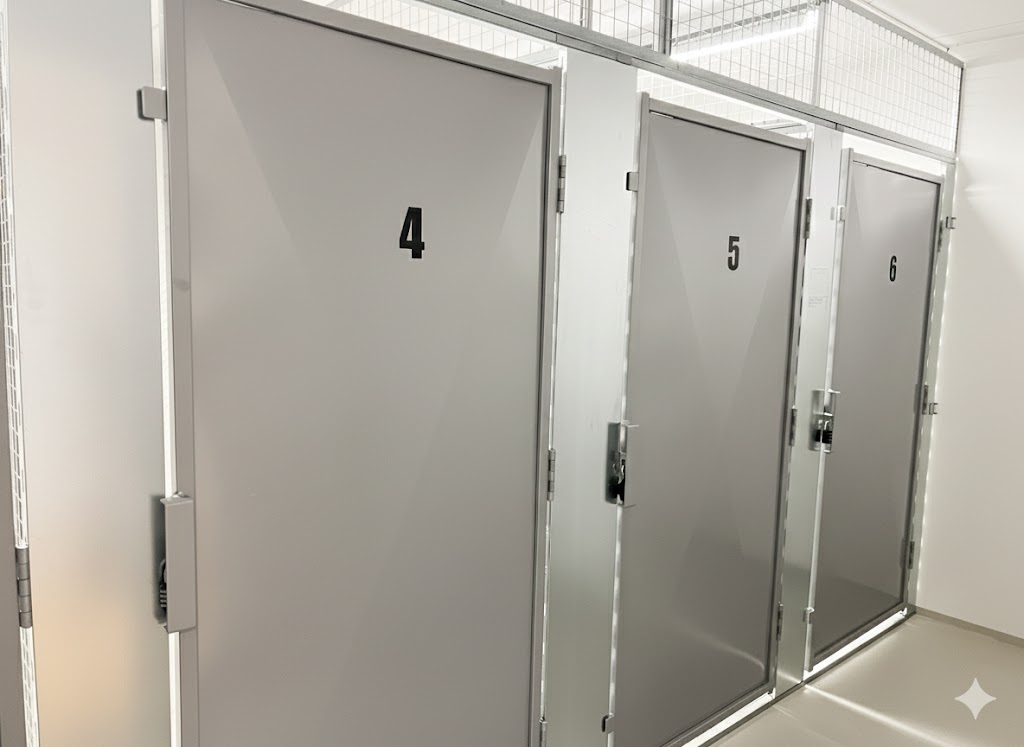 Depotrummene ligger i kælderplan med nem adgang via trappeopgang fra hovedbygningen. Alle rum er aflåste, tørre og holder en stabil temperatur året rundt.