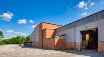 Ejendommen er en solid murstensbygning med et funktionelt og robust udtryk, som egner sig godt til drift. Den store port giver nem adgang til varelevering, og de åbne arealer gør det let at indrette efter behov.