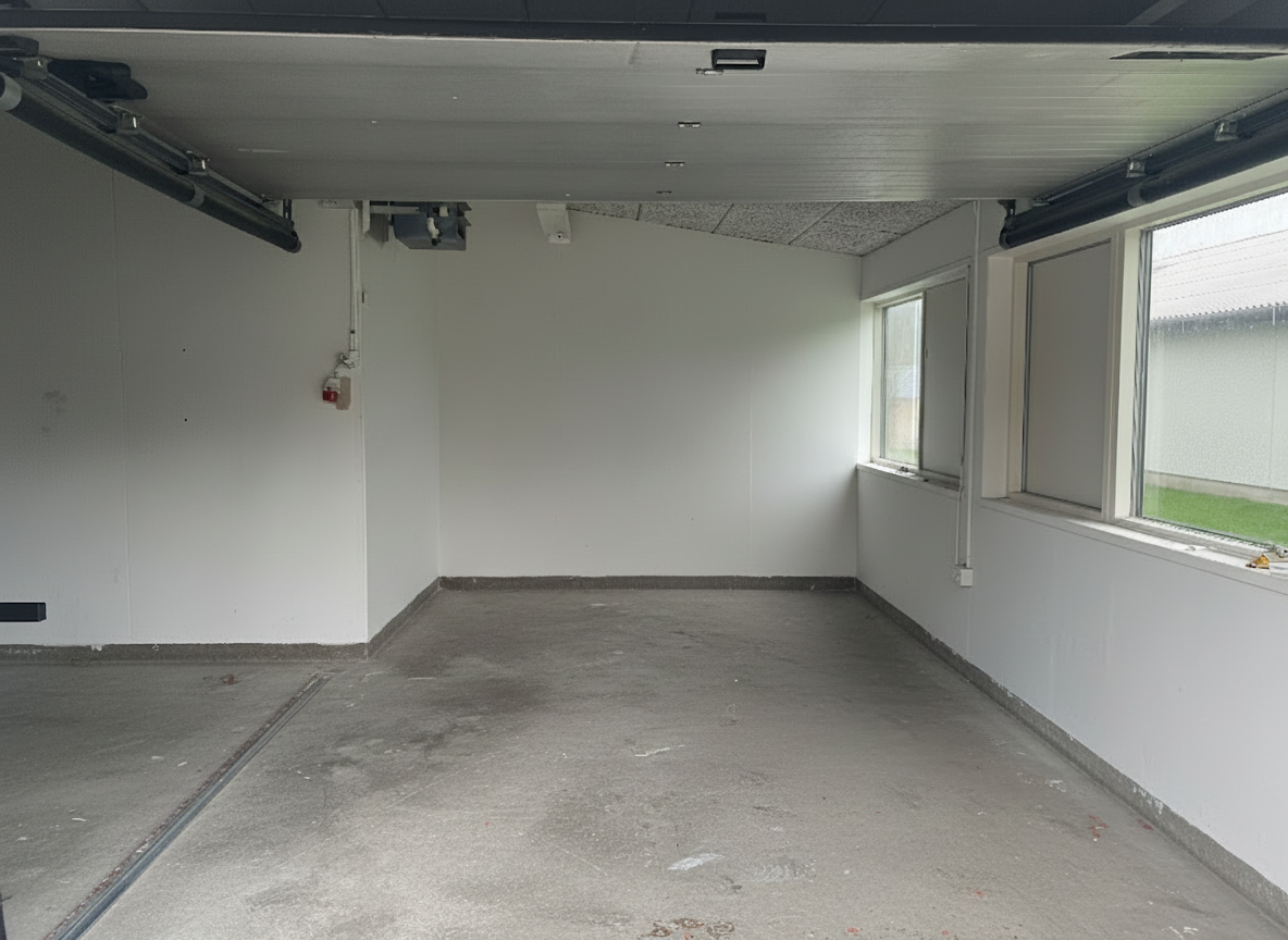 Lageret er isoleret og opvarmet, hvilket gør det anvendeligt året rundt. Lejemålet fremstår lyst og regulært med betongulv, gode loftshøjder og to porte, som giver fleksibel ind- og udlæsning.